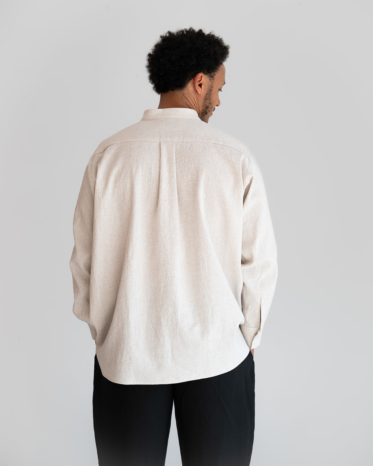 Das Hemd ist durch den weiten Schnitt bequem und unkompliziert. Es ist zeitlos und sportlich-elegant. Gefertigt aus einem hochwertigen alten Schweizer Leinen. Es ist ein Unisex Schnitt.