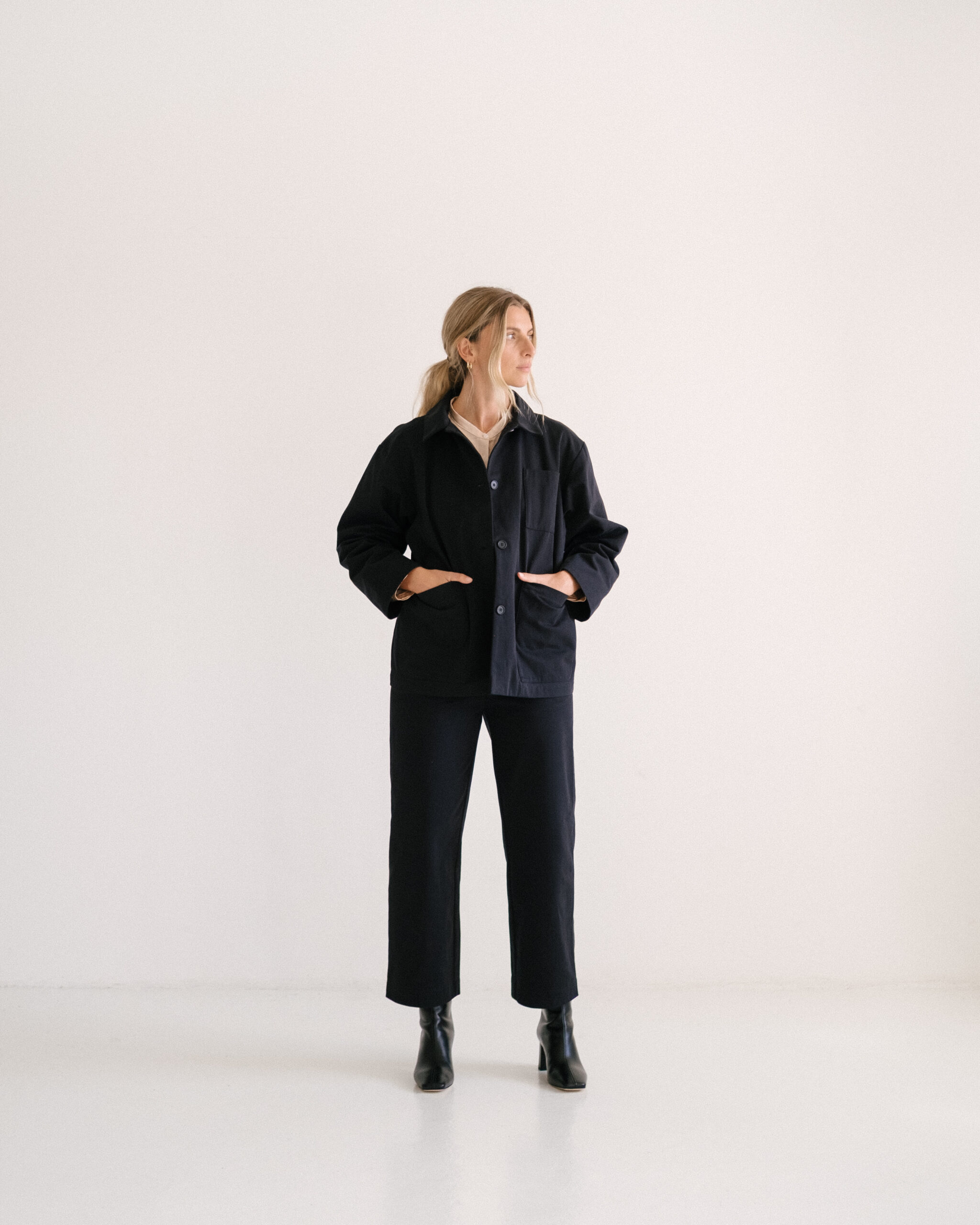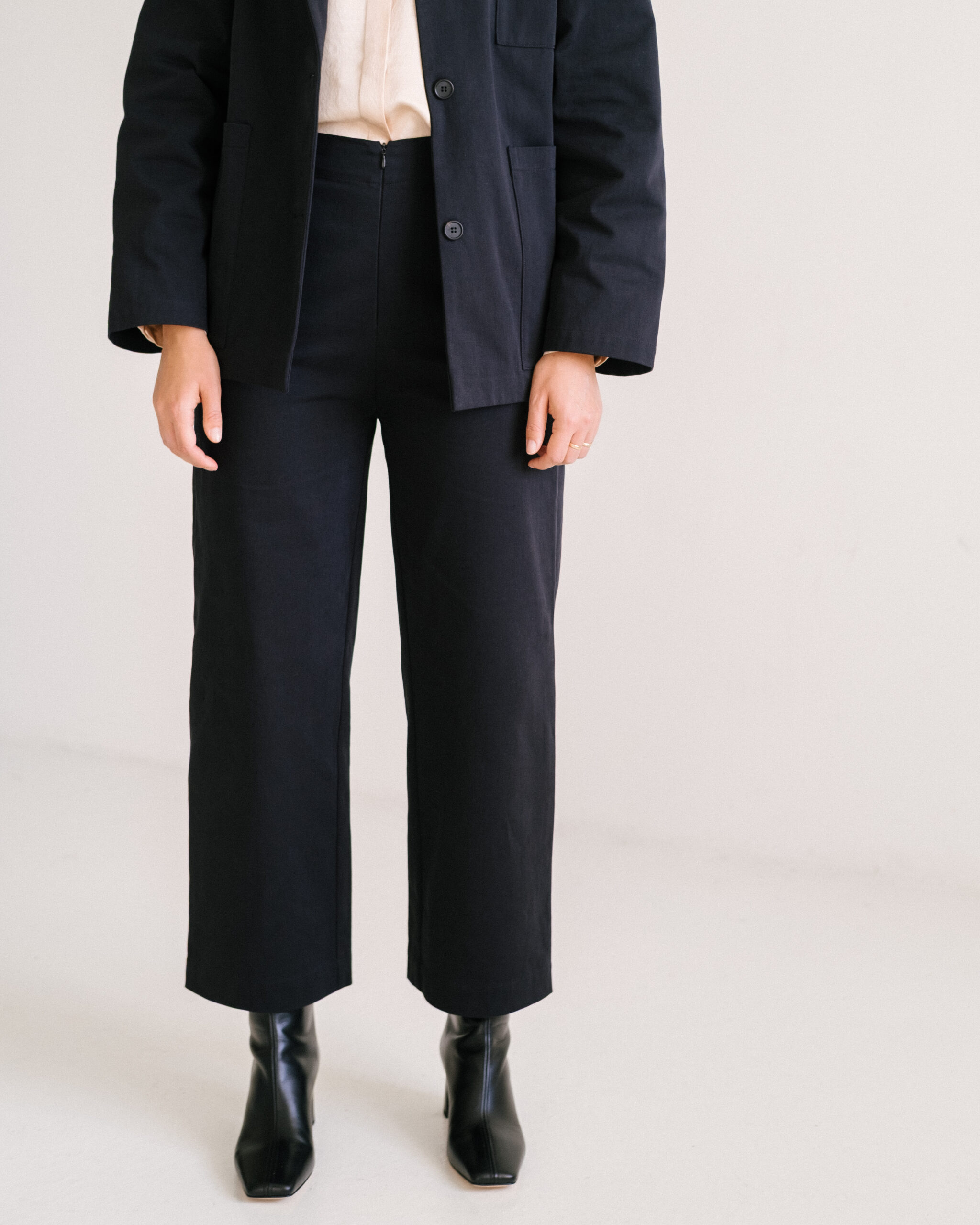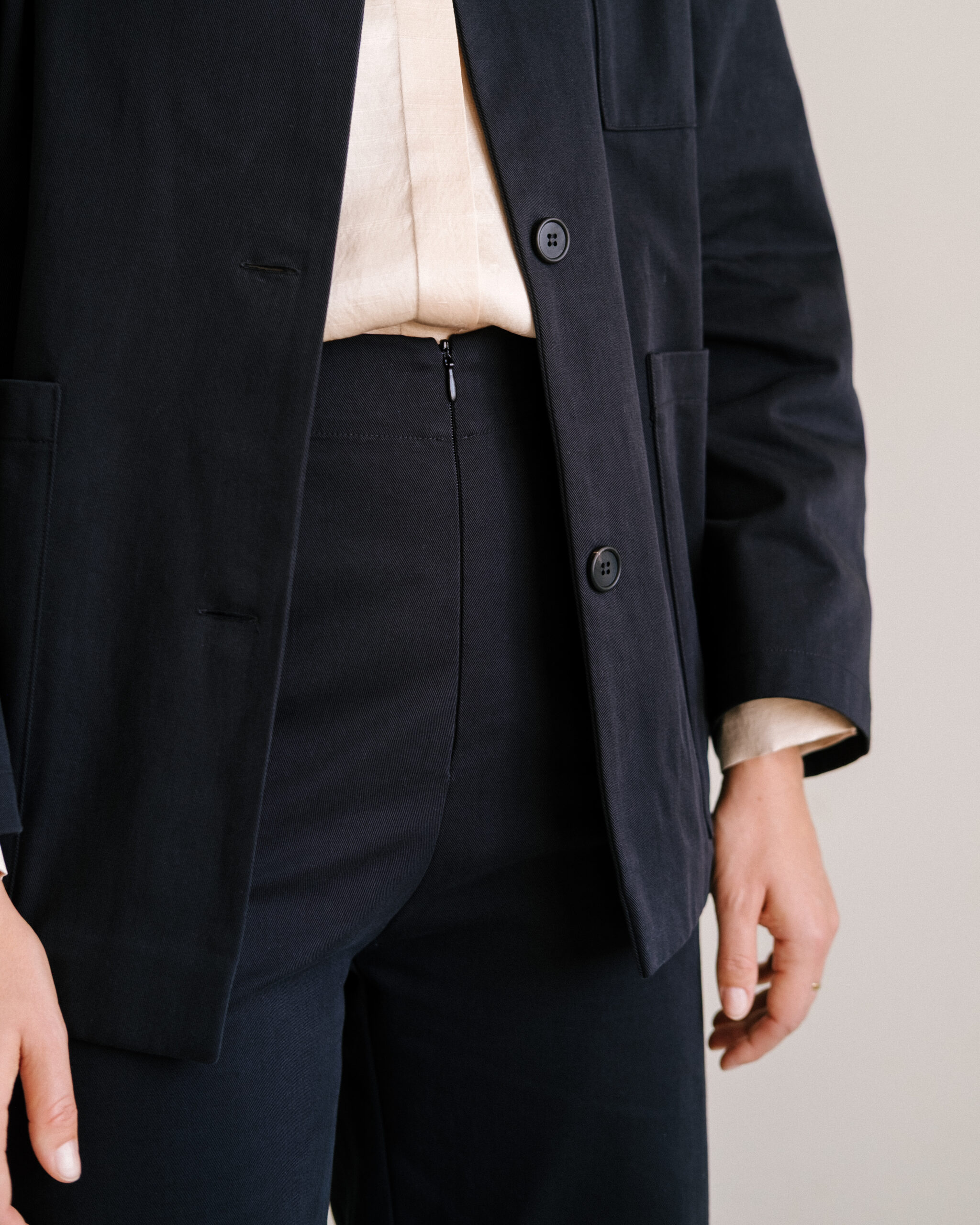 Hose mit geradem Bein und Reissverschluss in vorderer Mitte aus festem Bio-Baumwolltwill. Zeitlos und elegant, vielseitig kombinierbar für den Alltag und besondere Anlässe.