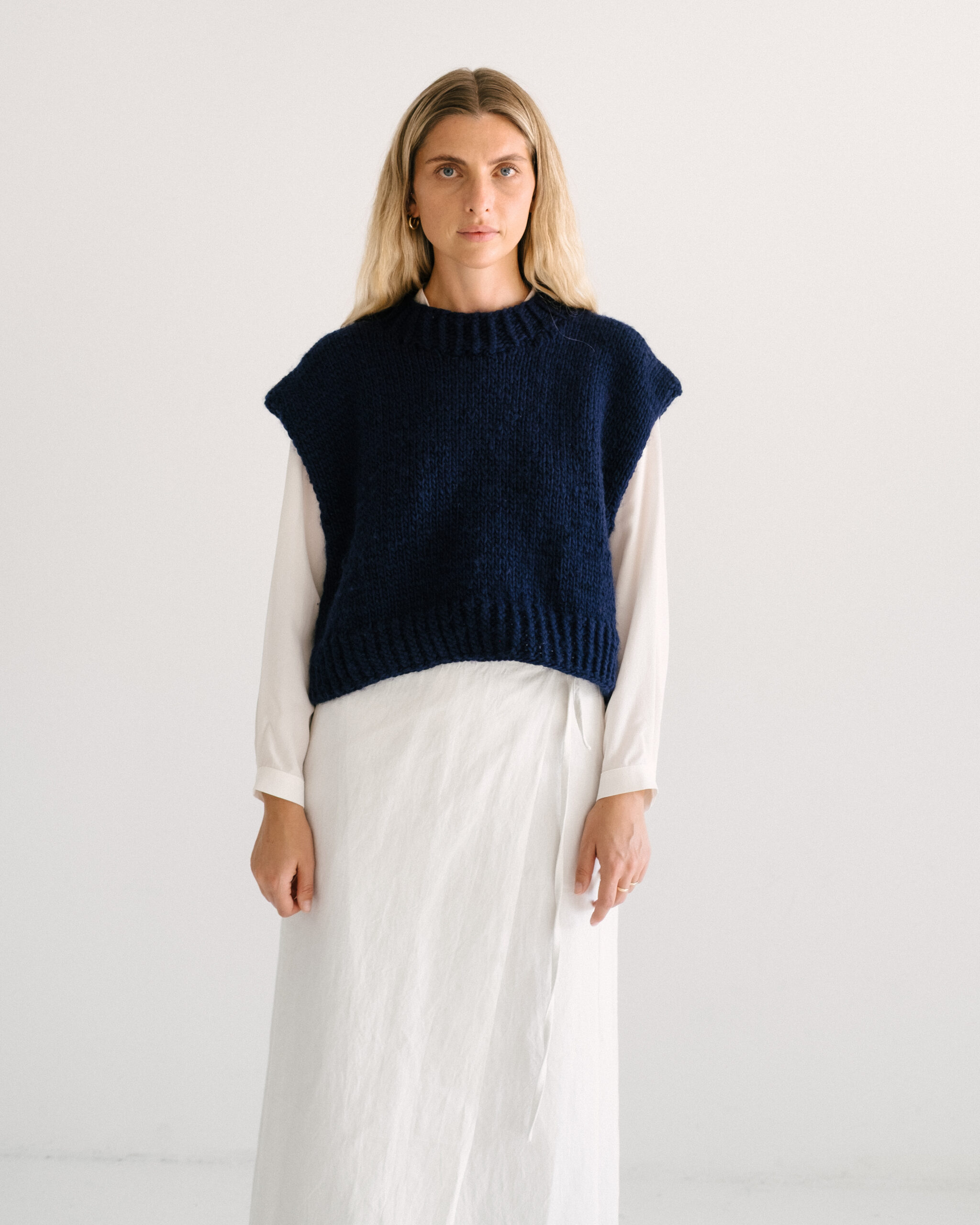 Der hangestrickte Pullunder anne wird in Bern von Hand gestrickt und überzeugt mit weichem, wärmendem Material. Er lässt sich ideal mit Blusen, Shirts oder Kleidern kombinieren und passt sowohl zu eleganten als auch zu legeren Outfits.