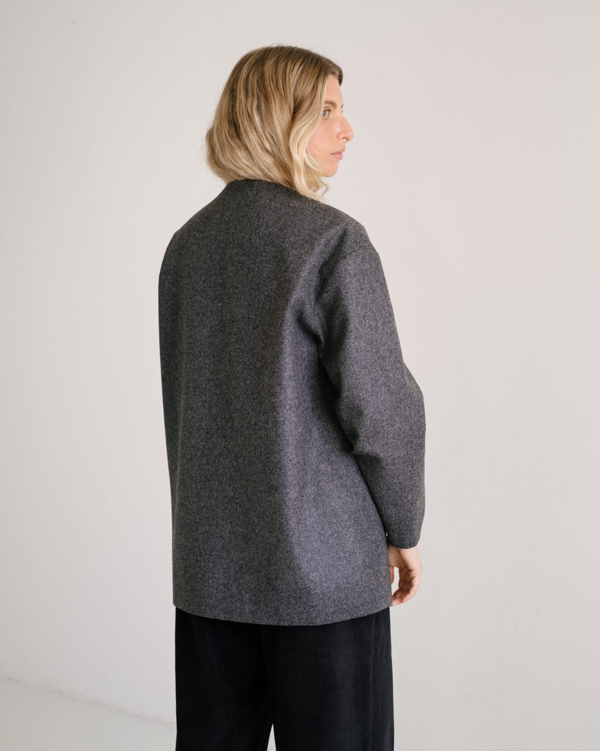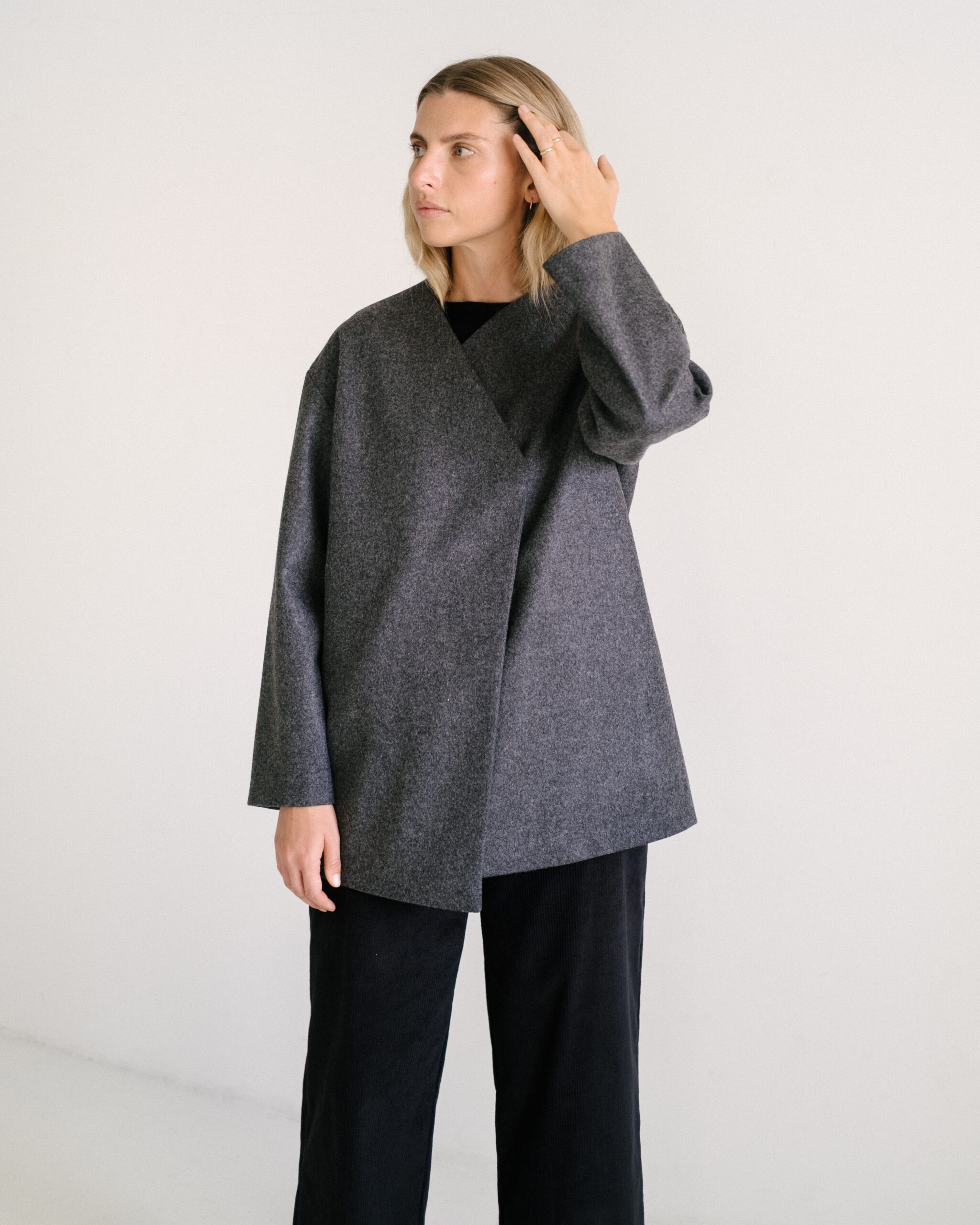Details // Asymmetrische Wolljacke, zwei versteckte Seitentaschen